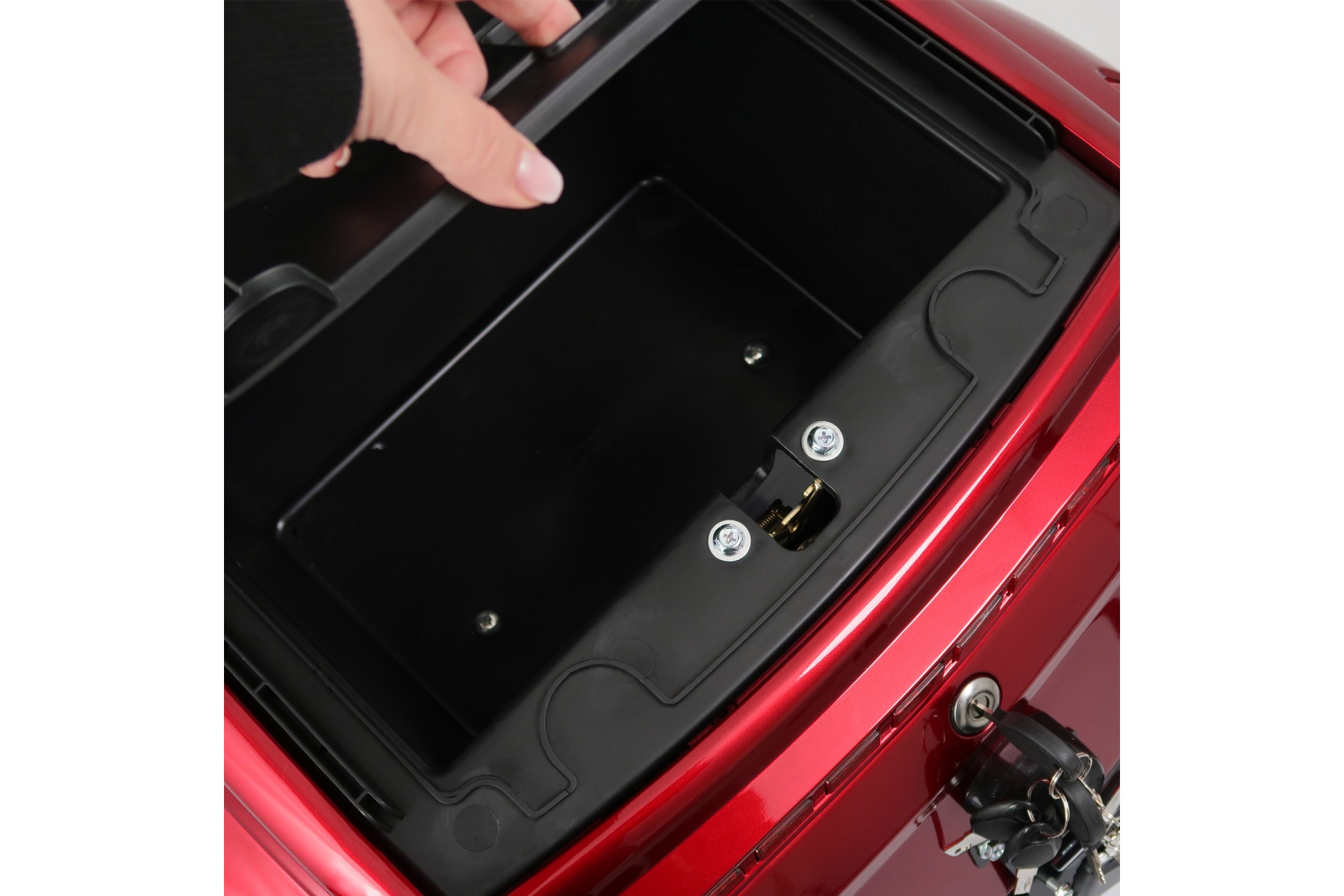 Ergonomie & rangement : topcase arrière sécurisé pour vos effets personnels, rangement sous le siège, porte canne / bâton, accessoires utiles pour PMR.