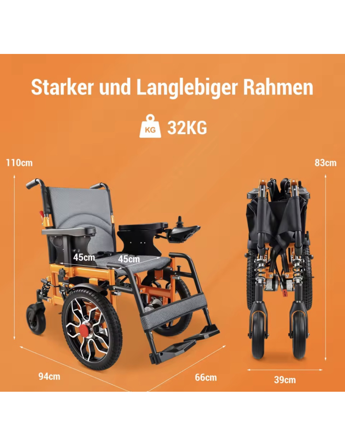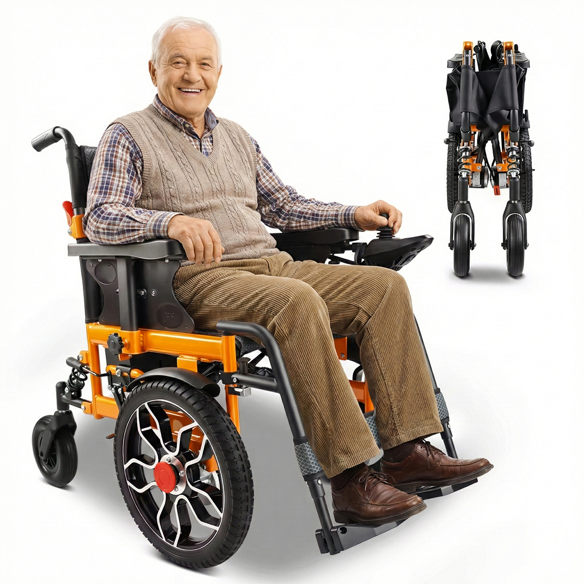 Puissance et praticité : Un fauteuil électrique 4 roues entièrement pliable, propulsé par un moteur performant de 500 watts.