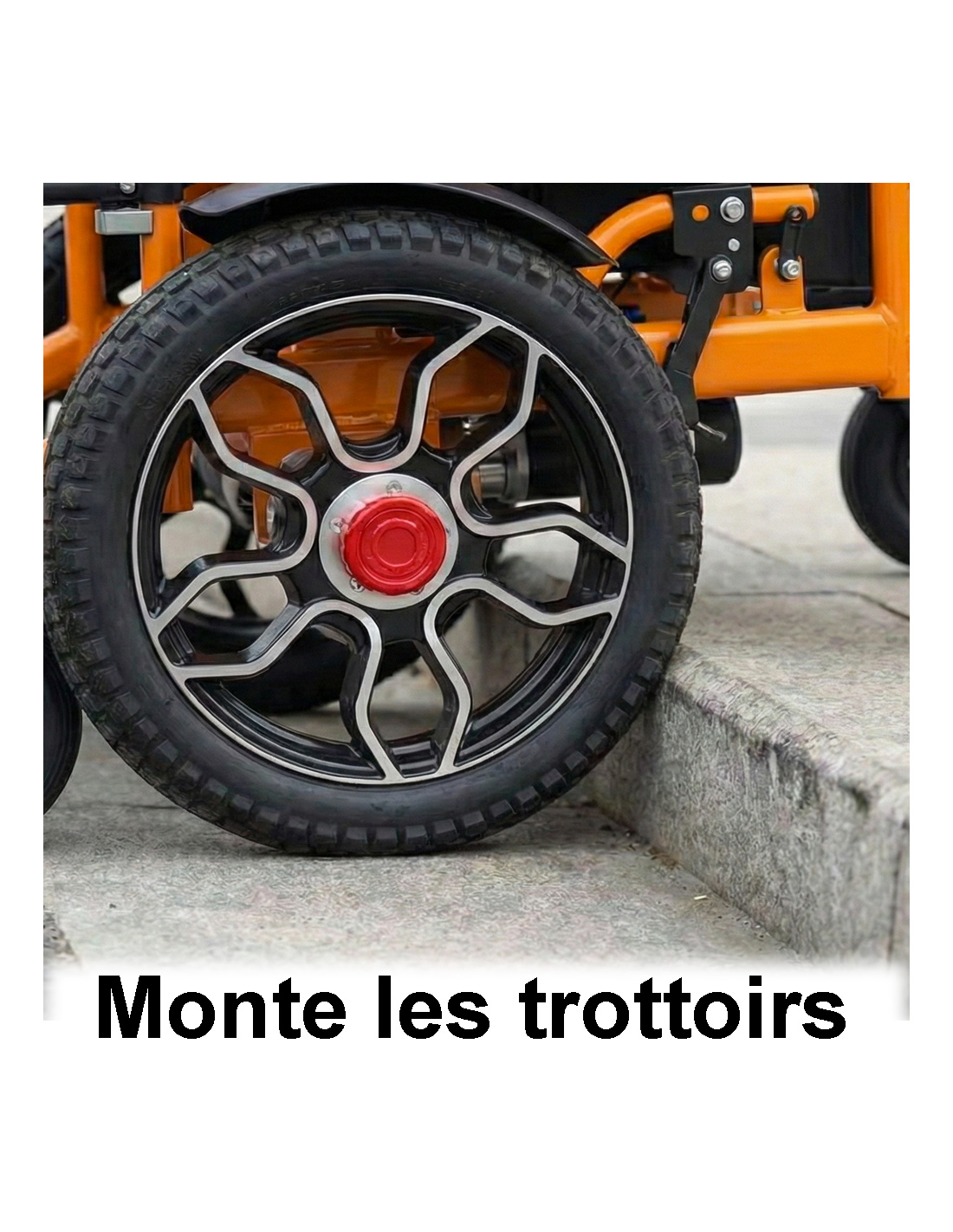 Franchissement tout-terrain : Équipé de grosses roues à l'avant pour grimper n'importe quelle pente et monter les trottoirs sans difficulté.